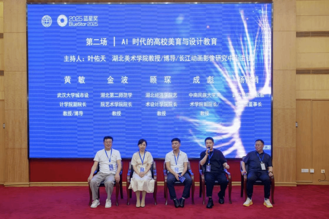 色彩研究中心主任肖世孟教授参与首场论坛。第二场论坛聚焦“AI时代的高校美育与设计教育”,由湖北美术果冻传媒