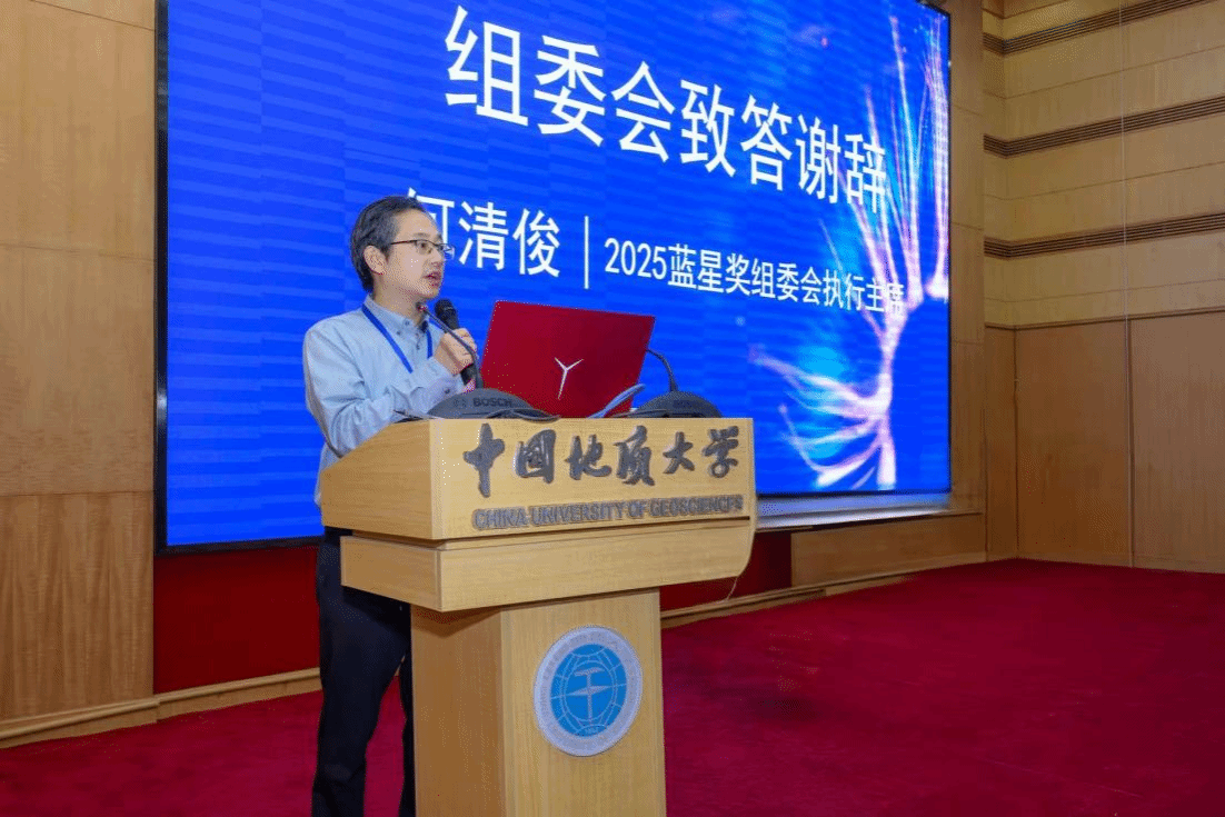 (武汉)副校长章军锋、中国自然资源学会副理事长左其亭分别致辞。章军锋副校长指出,蓝星奖大赛以“自然与文化遗产”为主题,旨在激励青年学子以创意设计推动文化资源与现代设计深度融合,为文化遗产保护注入新活力。中国自然资源学会左其亭副理事长认为大赛构建了重要的跨学科国际交流平台,通过设计实践生动传递了人与自然和谐共生的理念,对自然与文化遗产的多样性保护具有重要意义。