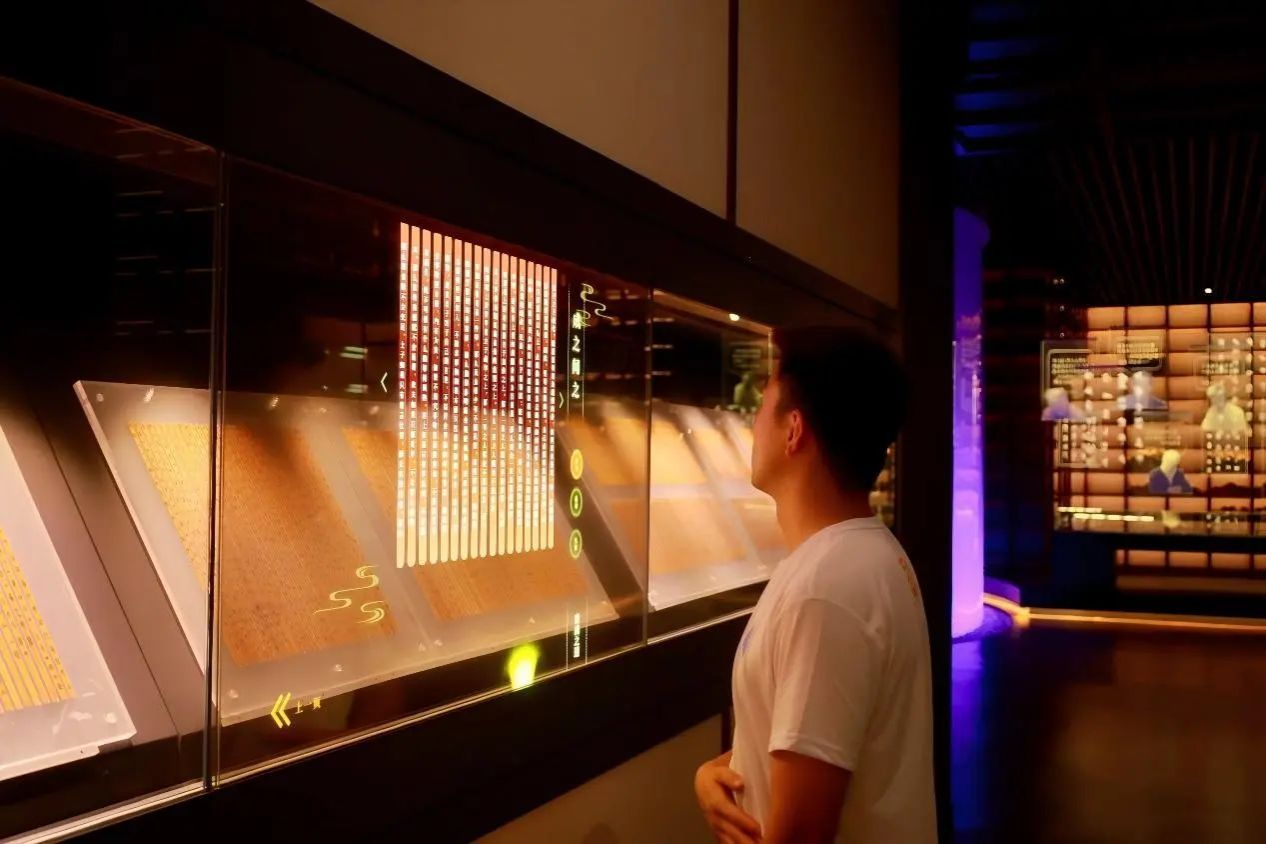 新馆运用全息投影、交互装置等科技手段,让文物“活”起来。在在郭店楚简展厅,全息投影技术将《老子》《太一生水》等典籍以动态光影呈现,配合楚地古乐,营造出“穿越千年”学术氛围。