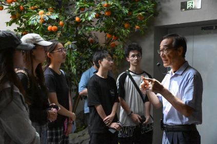 △王海群先生讲解秭归脐橙图 杨雯迪摄