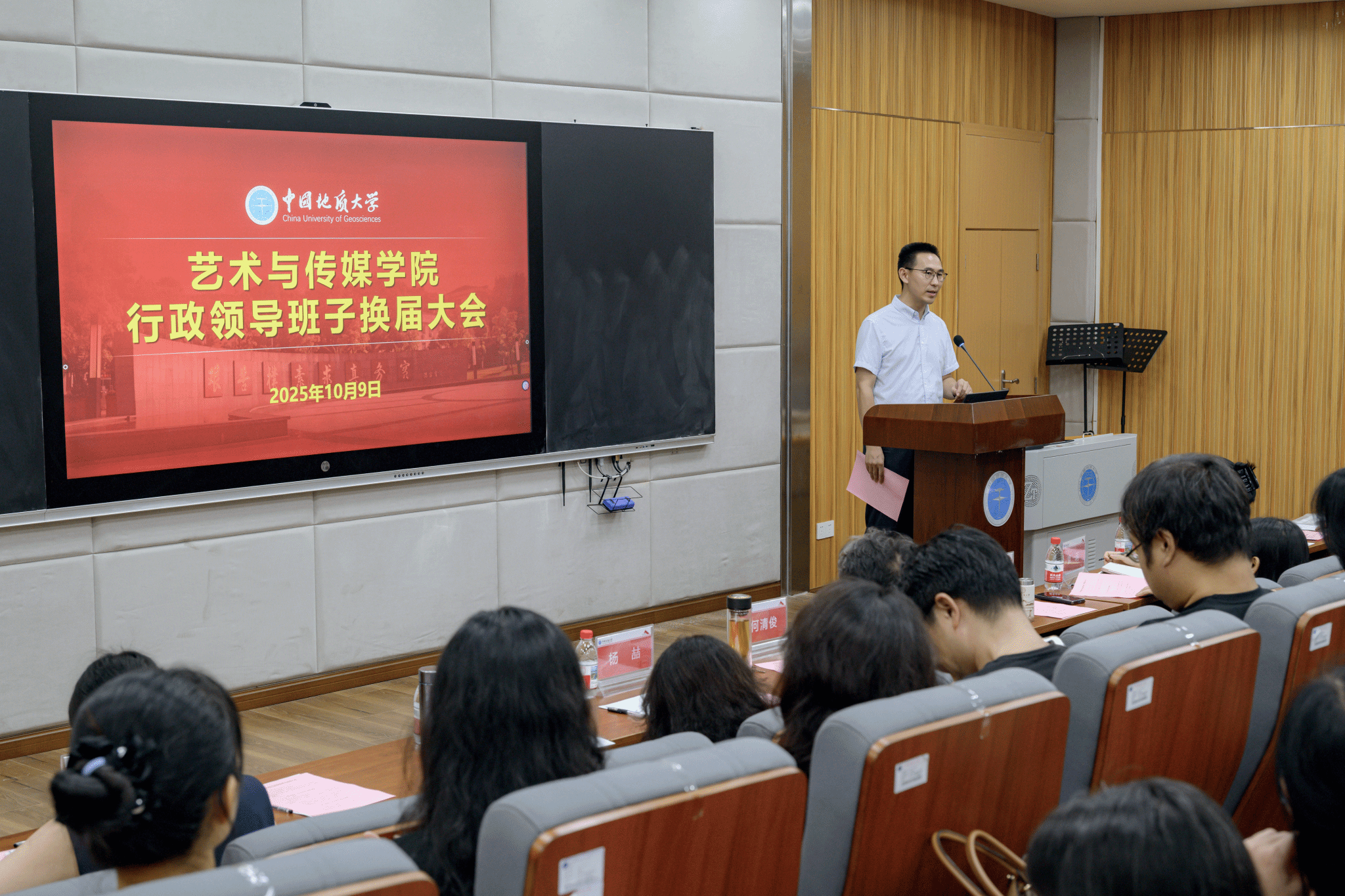 行政领导班子换届大会在艺媒楼1114报告厅顺利召开。党委常委、党委组织部部长陈文武,党委组织部副部长王珩,党委组织部干部科郭倩,果冻传媒