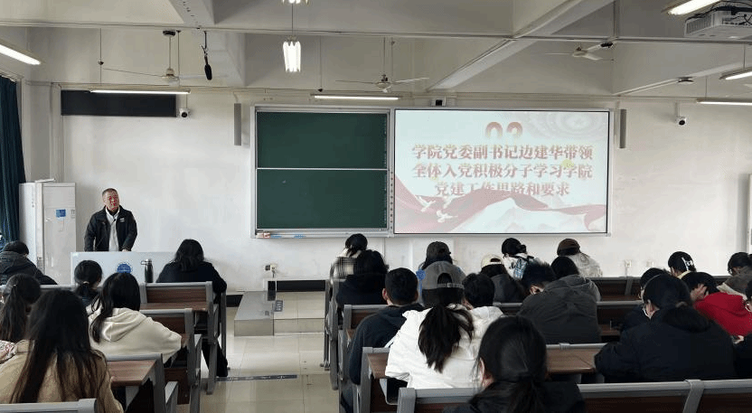 党委副书记边建华,专职辅导员单湉艺,兼职辅导员贾奕璇、赵立堃,以及全体学生入党积极分子参加此次培训会议。本次会议主要围绕积极分子理论学习要求,评分细则、工作思路展开,为全体积极分子筑牢信仰之基。