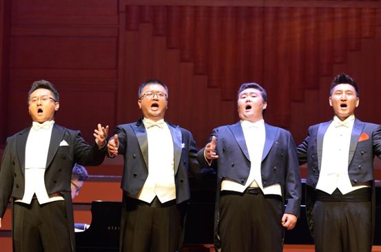 音乐会以余磊、董研峰、刘伟、张学樑和张哲五位男高音的一手《为你歌唱》拉开帷幕。期间,全体男高音的一组中国民歌:《在那遥远的地方》、《可爱的一朵玫瑰花》、《骏马奔驰保卫边疆》、《草原上升起不落的太阳》赢得了阵阵掌声,让现场师生都深深陶醉其中。音乐会在全体演员的《缆车》声中结束。
