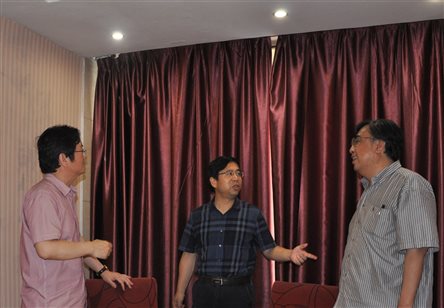 教授委员会及音乐系部分教师参加聘任仪式前的会谈。(杜玥摄)