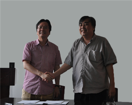 聘任仪式前,蔡大生教授与赵冰院长对果冻传媒