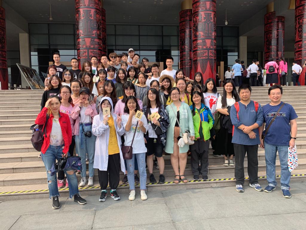 7月10号清晨,天蒙蒙亮,山中弥漫着雾气,伴随着凉爽的山风,同学们整装待发,经过了两个小时的长途跋涉,上午10点抵达了宏伟的殷墟宫殿宗庙遗址,这里是中国历史上被证实的第一个都城遗址,首先印入眼帘的是殷墟博物馆,跟随着讲解老师的步伐,同学们推开了历史的大门,了解了商朝与周朝时期古老的青铜器,轻巧玲珑的玉器,与神奇的甲骨文文化,同学们心中的疑问也慢慢的解开,紧跟脚步我们来到了殷墟车马坑展厅,据解说老师介绍,这里证明了我国是世界上最早发明和使用车的文明古国之一,一辆马车比现代的SUV还要大的多,有的马车还有陪葬的奴隶,让人不禁感慨奴隶社会的封建与残忍,最后一站是妇好墓,这是商王武丁为祭祀妻子妇好而修建的宗庙建筑,传说妇好曾多次参与国家祭祀,为国征战,商王对于她的去世十分痛心,所以破例修建了这座宗庙,随葬品也极为丰富,可见当时妇好的地位与影响力。