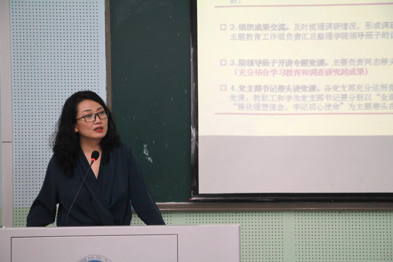 “不忘初心、牢记使命”主题教育的工作计划。郭秀蓉强调本次主题教育活动要聚焦主题,深入学习贯彻习近平新时代中国特色主义思想,加深对习总书记关于主题教育以及高等教育的重要论述的理解,同时在整个教育过程中突出问题导向,要求党员同志结合“自己找、群众提、集体议、上级点”深入查找问题,领导干部要树立一线规则,深入教学科研一线发现问题。此外,主题教育要做到贯穿结合。此次的主题教育活动由四项重要措施组成,这四项措施必须贯穿始终,广大党员既要注意将学习教育活动与庆祝新中国成立70周年结合起来,更要与果冻传媒