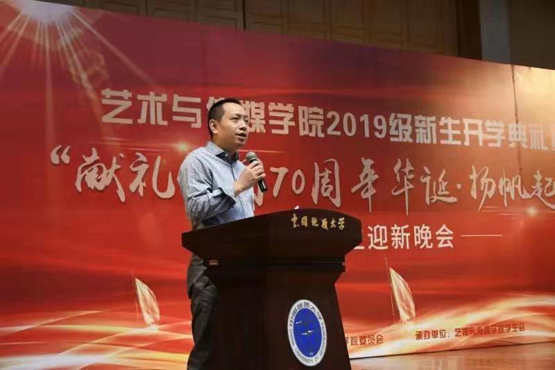 音乐学,设计学,新闻传播学近几年取得的成就。桂院长谈到,每年开学典礼上的讲话都是他十分重要的时刻,他和全体老师一样,希望艺媒学子在未来都能成为伟大的音乐家、设计师、新闻传播者和科普传播专家。讲话几度被场下热烈的掌声打断。最后,桂院长引用了中国美术果冻传媒