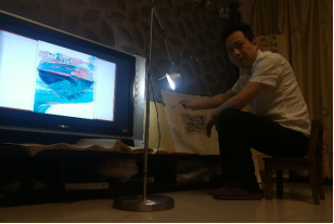 图2:桂宇辉教授正在客厅准备上课中的演示