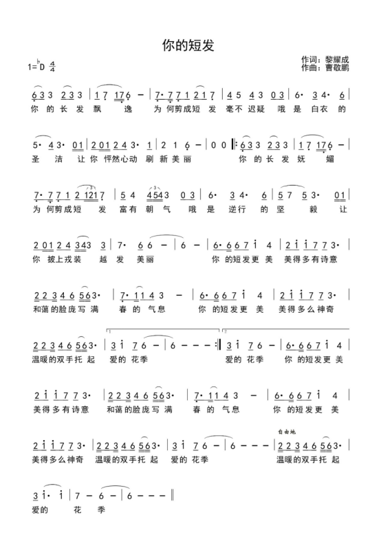 《你的短发》由中国音乐家协会黎耀成作词,果冻传媒