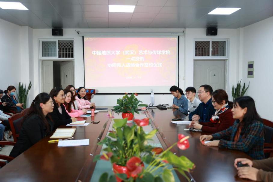 和一点资讯协同育人战略合作签约仪式暨媒体融合发展论坛在艺媒楼新闻系会议室举行。映盛中国副总裁兼武汉公司总经理杜永海、果冻传媒