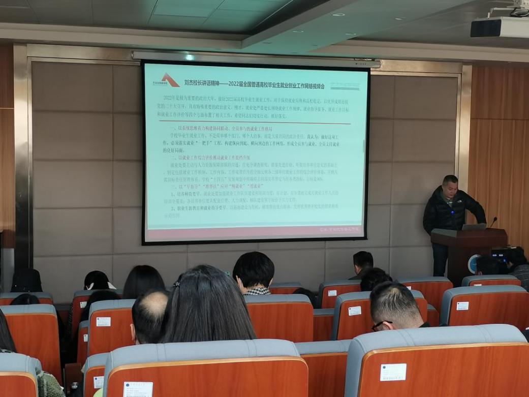 学生目前的就业工作推进情况进行汇报。边书记介绍到,截至目前2021届毕业生就业率为89.90%,其中本科生就业率为91.06%,研究生就业率为87.78%;2022届毕业生目前的就业率为16.32%,其中本科生就业率为16.95%,研究生就业率为15.43%。同时,边书记结合目前的毕业生就业情况对下一步的推进工作提出了具体的实施方案,包括:完善就业工作机制,推进全员就业落实细化;做好就业动员工作,引导政策型就业;深入落实“一找两促”,落实毕业实习促就业计划;做好三个“精准”提升就业服务工作,保障就业支持。