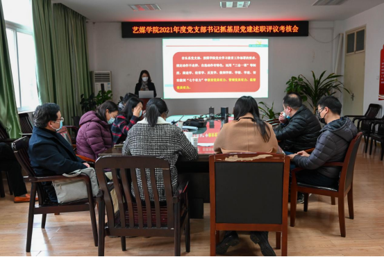五个教职工党支部书记依次进行述职。音乐系党支部提出支部分工合作,充分发挥专业特长,不断落实党史学习教育的具体要求;景观学系党支部汇报了支部一年来开展的工作及未来规划;视觉与媒体设计系党支部提出以基层工作为抓手,调动党员自身学习和工作的积极性;新闻传播系党支部介绍了加强党建与业务融合,通过评价支部党员们的学术指导效果来提高教师党员工作的创新性;院直党支部强调要更加注重和发挥师生工作的协调性,通过树立和宣传模范典型激发党员们的奋进力量。