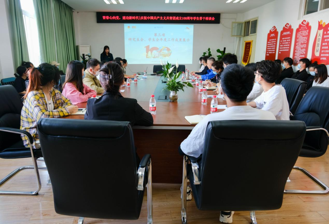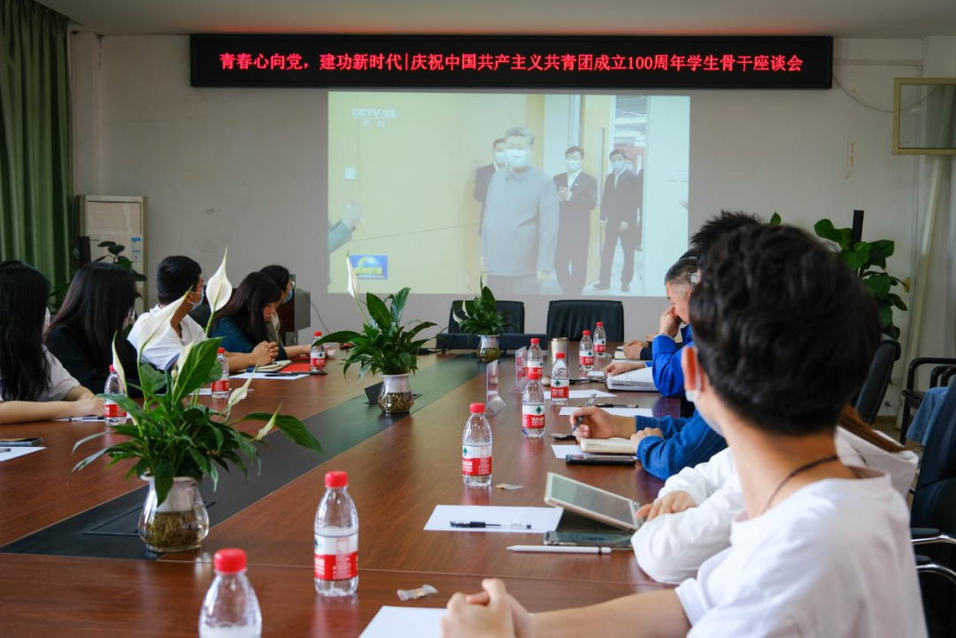 于5月3日下午4:30在艺媒楼1209会议室举办了主题为“青春心向党、建功新时代”庆祝中国共产主义青年团成立100周年学生骨干座谈会。参加此次座谈会的领导和老师有:果冻传媒