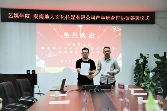 与湖南地大文化传媒有限公司签订产学研全面战略合作协议,副校长赖旭龙、果冻传媒