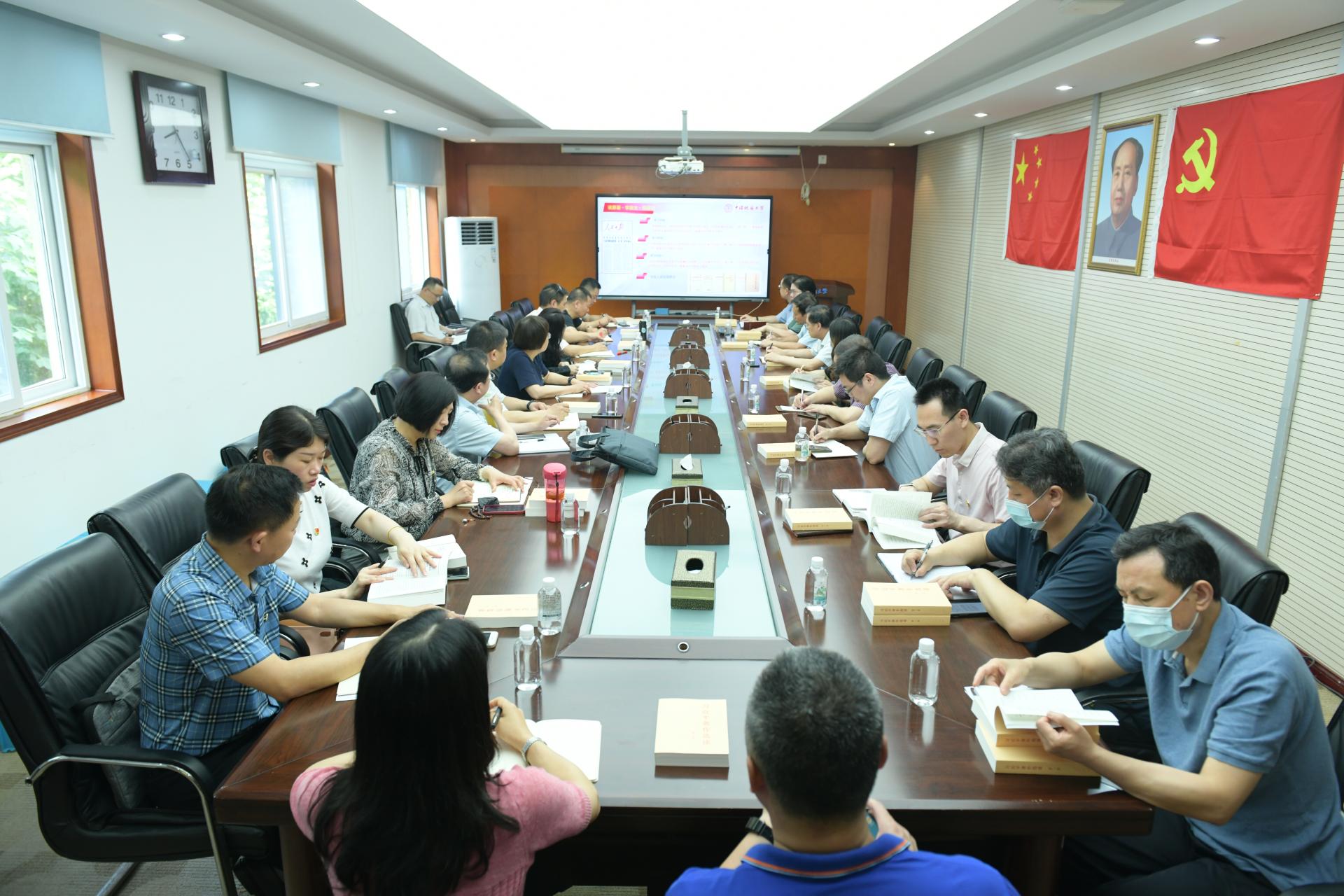 为贯彻落实学校主题教育实施方案当中“在‘学思想上下功夫’”的有关要求,党委组织部、党委统战部、工会、离退休工作处、图书档案与文博部、外国语果冻传媒