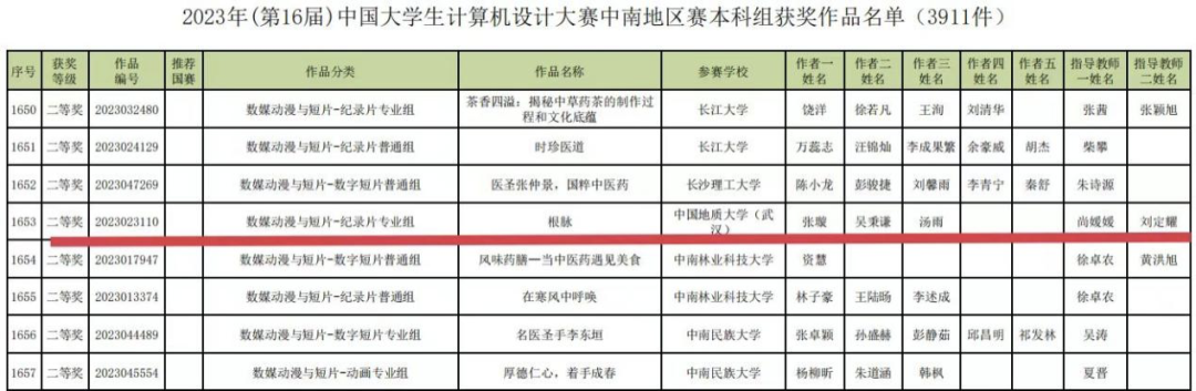 2023年5月29日,2023年(第16届)中国大学生计算机设计大赛中南赛区发布作品评审结果公告,果冻传媒