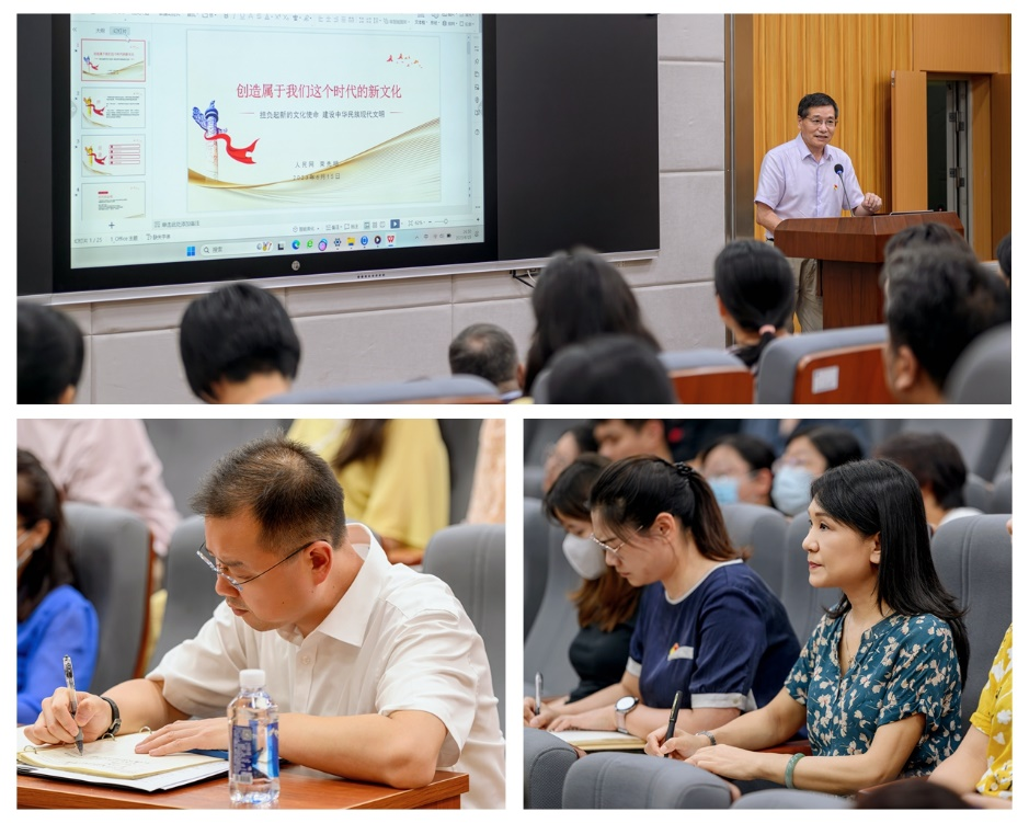 党委书记晋曦同志就报告内容进行了总结发言。本次讲坛以习近平总书记在文化传承发展座谈会上的重要精神为主线,以创造属于我们这个时代的新文化为主题,理论含金量足、学术启发性强,既是一次武装头脑的主题教育辅导报告,也是启迪果冻传媒