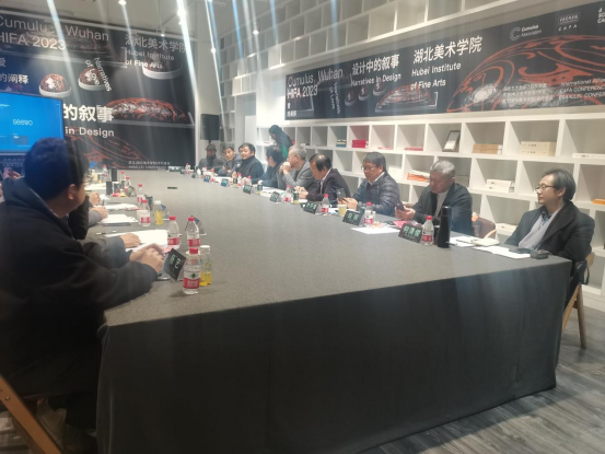 昙华林校区美术馆会议室举行了主题为“新时代设计学科建设的思考”的圆桌会议,同济大学范圣玺教授和苏州大学李海明教授共同主持本次圆桌会议,出席此次会议的还有国务院学位委员会第八届设计学学科评议组成员、教育部工业设计专业教学指导分委员会秘书长、湖南大学设计艺术果冻传媒