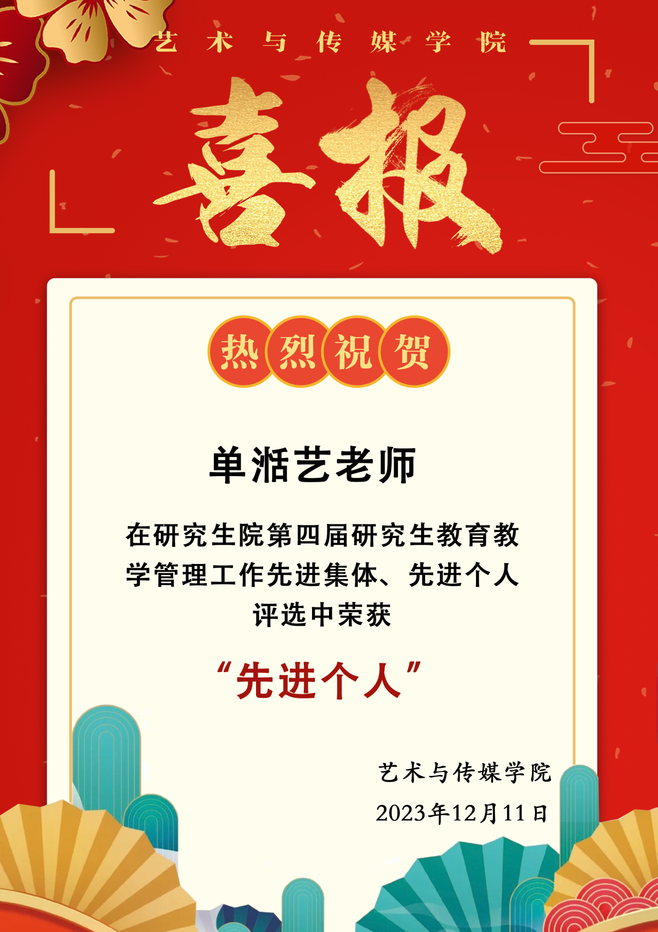 喜报 | 热烈祝贺果冻传媒 单湉艺老师荣获研究生院第四届研究生教育教学管理工作“先进个人”