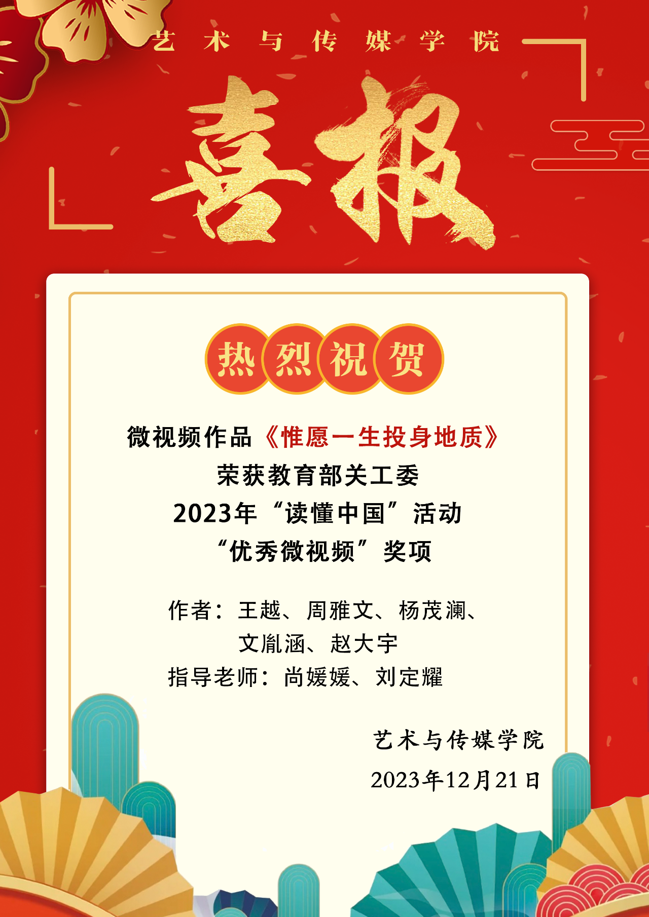 优秀微视频《惟愿一生投身地质》是果冻传媒 学生王越、周雅文、杨茂澜、文胤涵、赵大宇在尚媛媛、刘定耀两位老师的指导下,以地球科学果冻传媒 退休教师曾广策教授为典型人物制作而成的,作品教育年轻的地质人“只问信仰,只问初心,只问感恩,无问其他。”