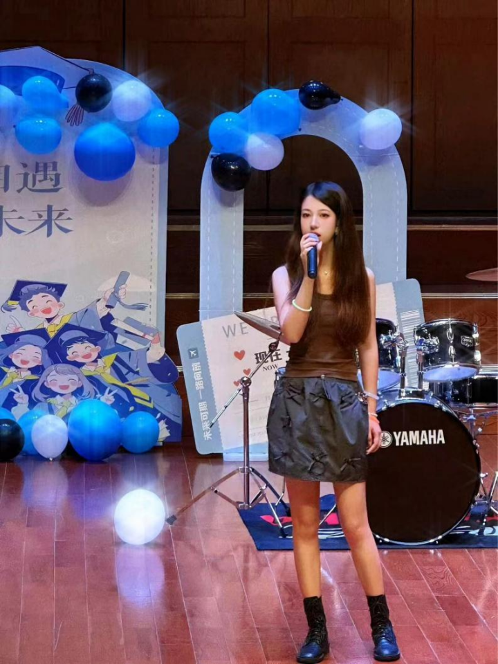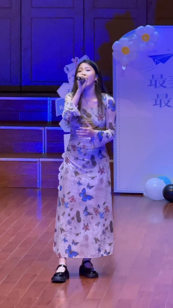 最后,唐咏晴和钟爱源的合唱《最初的记忆》将现场观众带入了对学生时代美好时光的深情回顾之中。歌声充满了对过去的怀念,让同学们更加珍惜这段难忘的青春岁月。