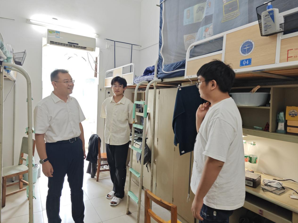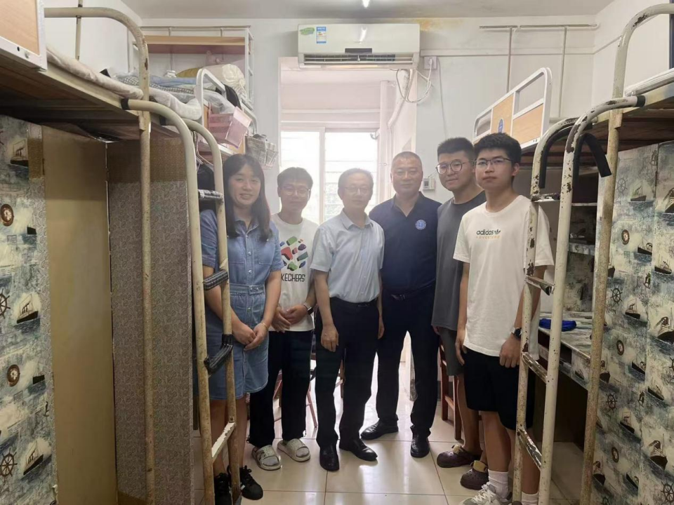 党委书记晋曦,院长何清俊,副院长张梅珍、杨喆、袁玥,党委副书记边建华,学工组辅导员单湉艺、曾戈晖,兼职辅导员吴健、苏萌越、赵立堃、曹彬彬等一行人深入2024级新生宿舍,为即将开启大学和研究生之旅的学子们带来了慰问与关怀。院领导们鼓励同学们要珍惜时光、充分利用大学的资源,增强本领和综合素质提高,为未来的发展打下坚实的基础。