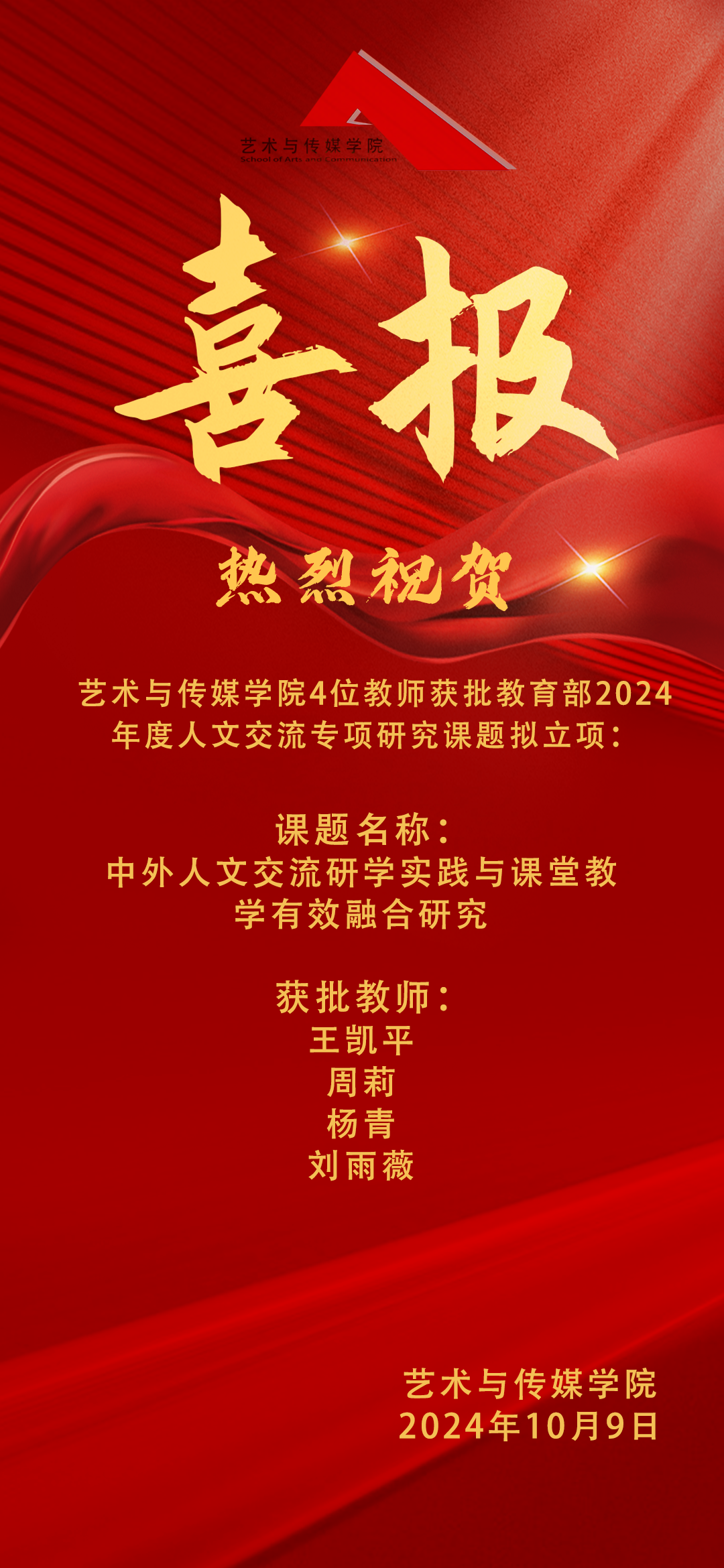 喜报|热烈祝贺果冻传媒 4位老师获批教育部2024年度人文交流专项研究课题拟立项!
