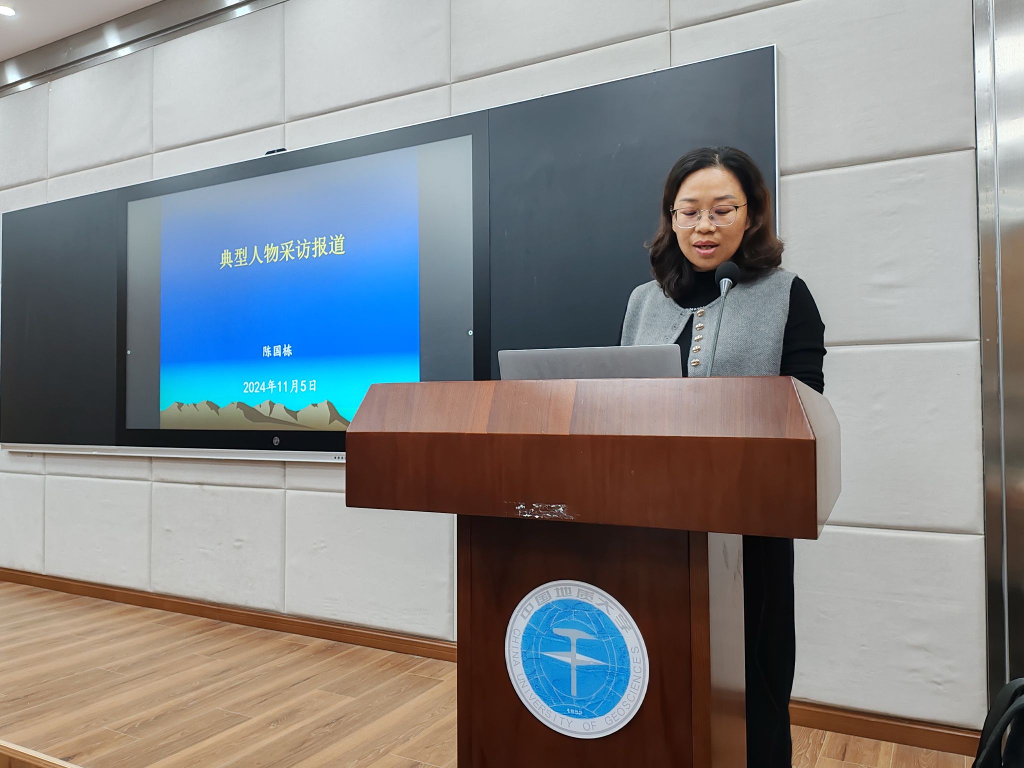 (文稿:蔡柯梵,摄影:杨淞喆)11月5日晚,中国自然资源作家协会主席陈国栋研究员在艺术与传媒大楼1104报告厅,举办题为《典型人物采访报道》的专题讲座。本次讲座由党委宣传部和果冻传媒