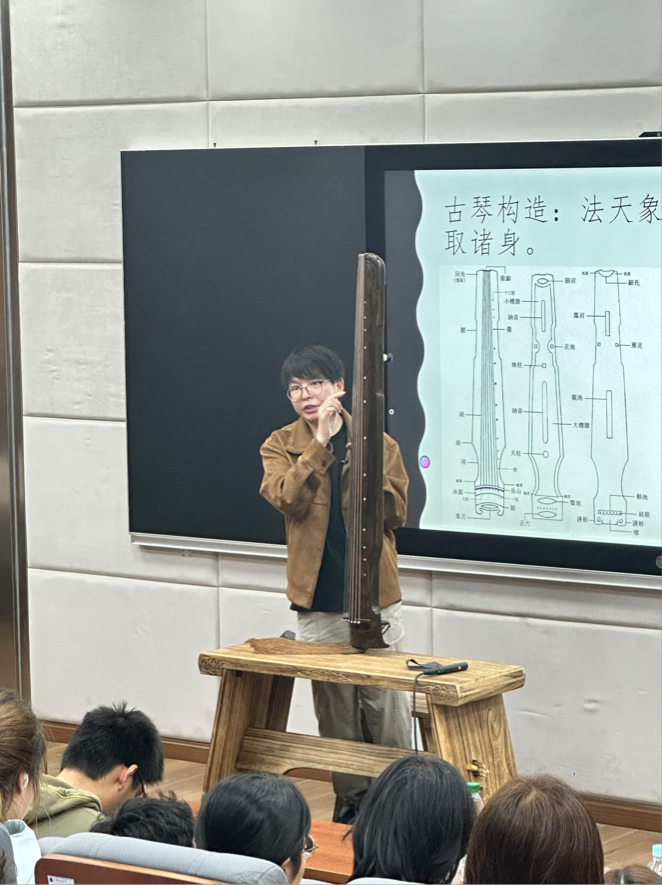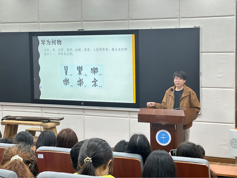 (武汉)北区艺媒楼1104报告厅顺利举行。陈宜外老师以丰富的专业知识和精湛的演奏技巧,将古琴艺术的历史沿革、文化内涵以及曲目赏析等多方面的内容娓娓道来。