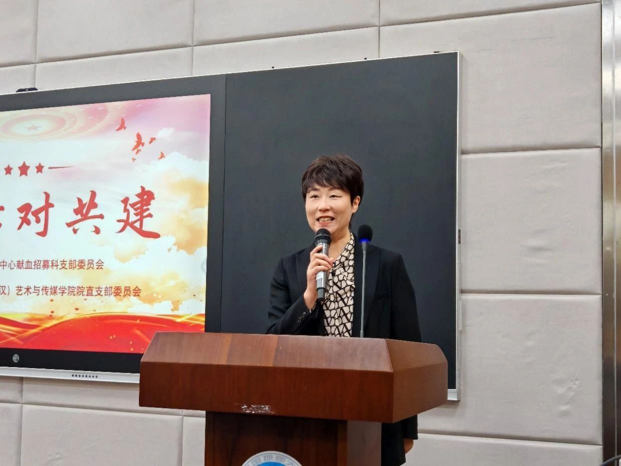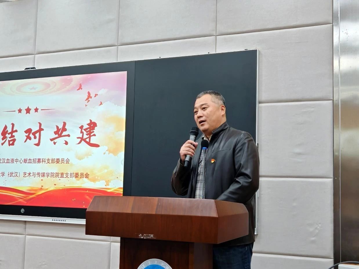 在艺媒楼1104报告厅开展了“热血担当,青春有我”无偿献血主题分享及支部共建活动。武汉血液中心党委委员、副主任杜思颖,武汉血液中心献血招募科王丹,武汉血液中心献血招募科党支部书记顾军,果冻传媒