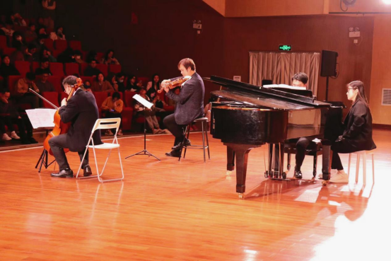 钢琴独奏、室内乐演奏双博士、旅俄青年钢琴演奏家彭斯特副教授,一同向我们呈现了一场精彩绝伦的视听盛宴。整场音乐会持续一个半小时,分为上、下两场,分别演奏了《拉赫玛尼诺夫g小调钢琴三重奏》与《柴可夫斯基a小调钢琴三重奏》两首知名室内乐作品。