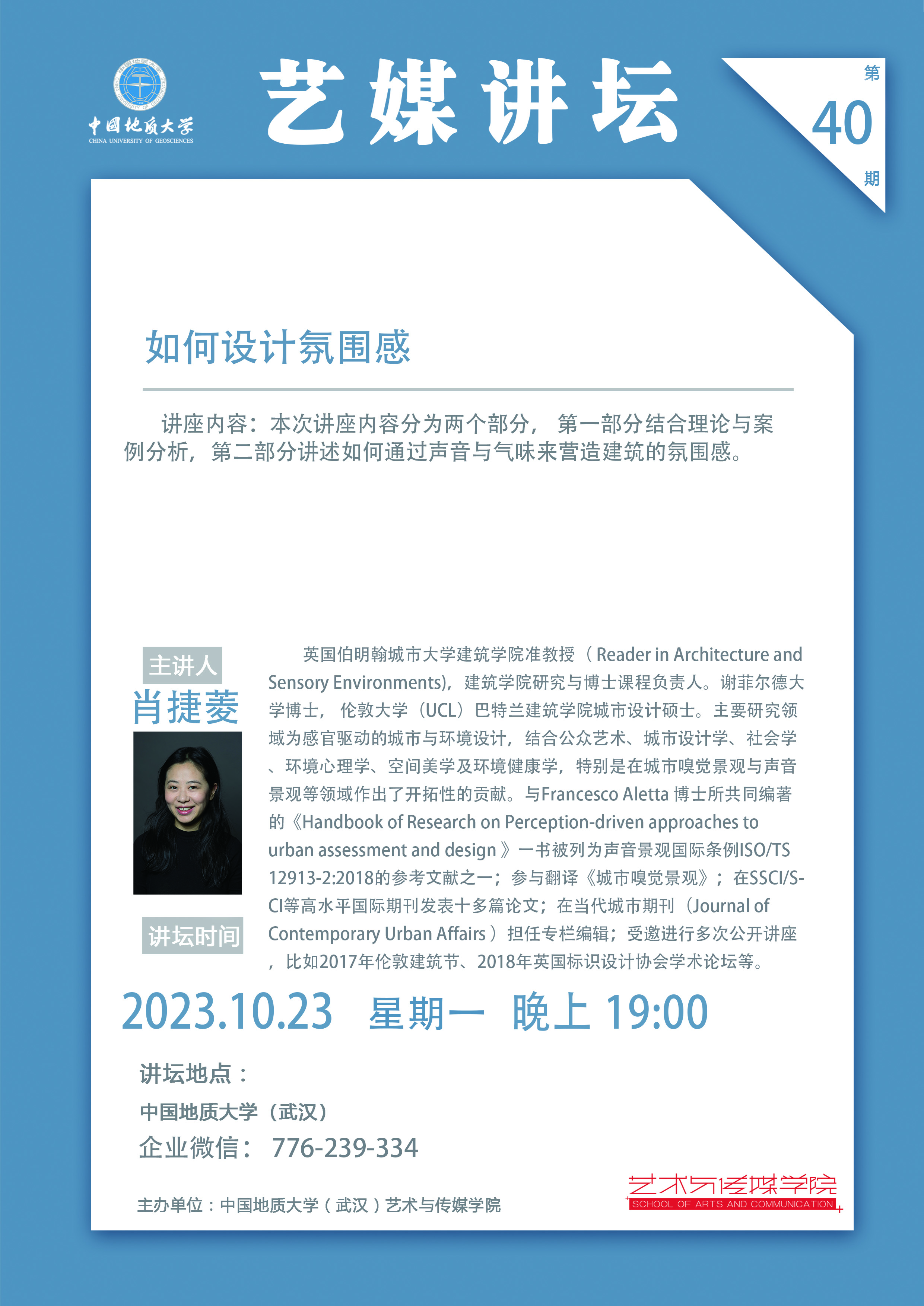 [2023年10月23日]学术讲座:英国伯明翰城市大学建筑果冻传媒 教授肖捷菱讲座