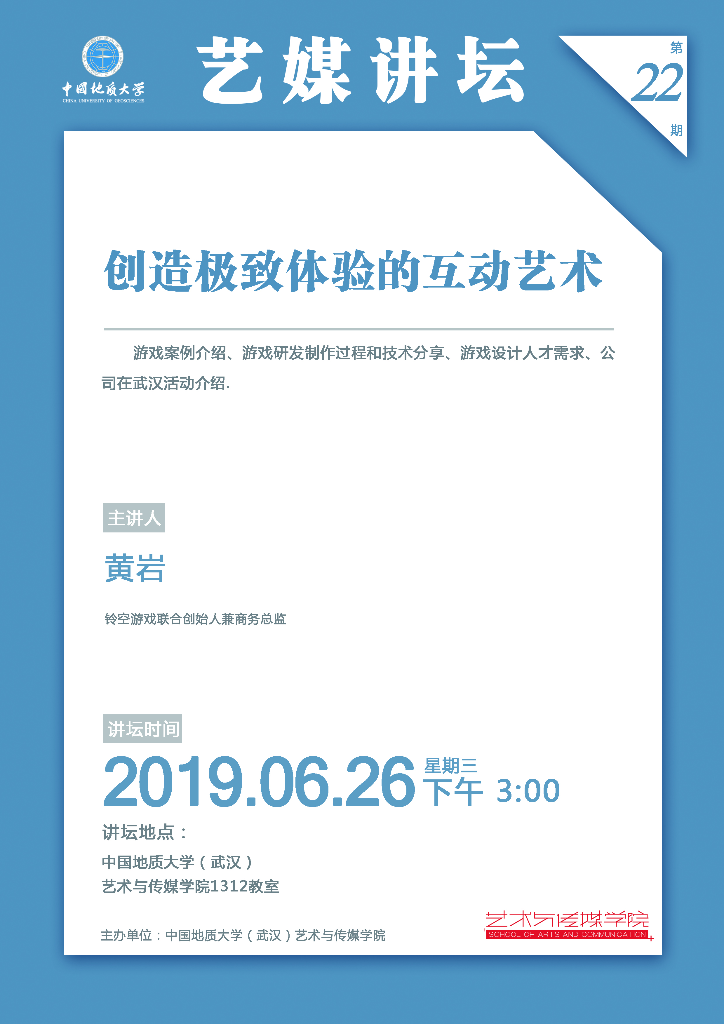 [2019年6月26日]艺媒讲坛(22期):铃空游戏黄岩讲座