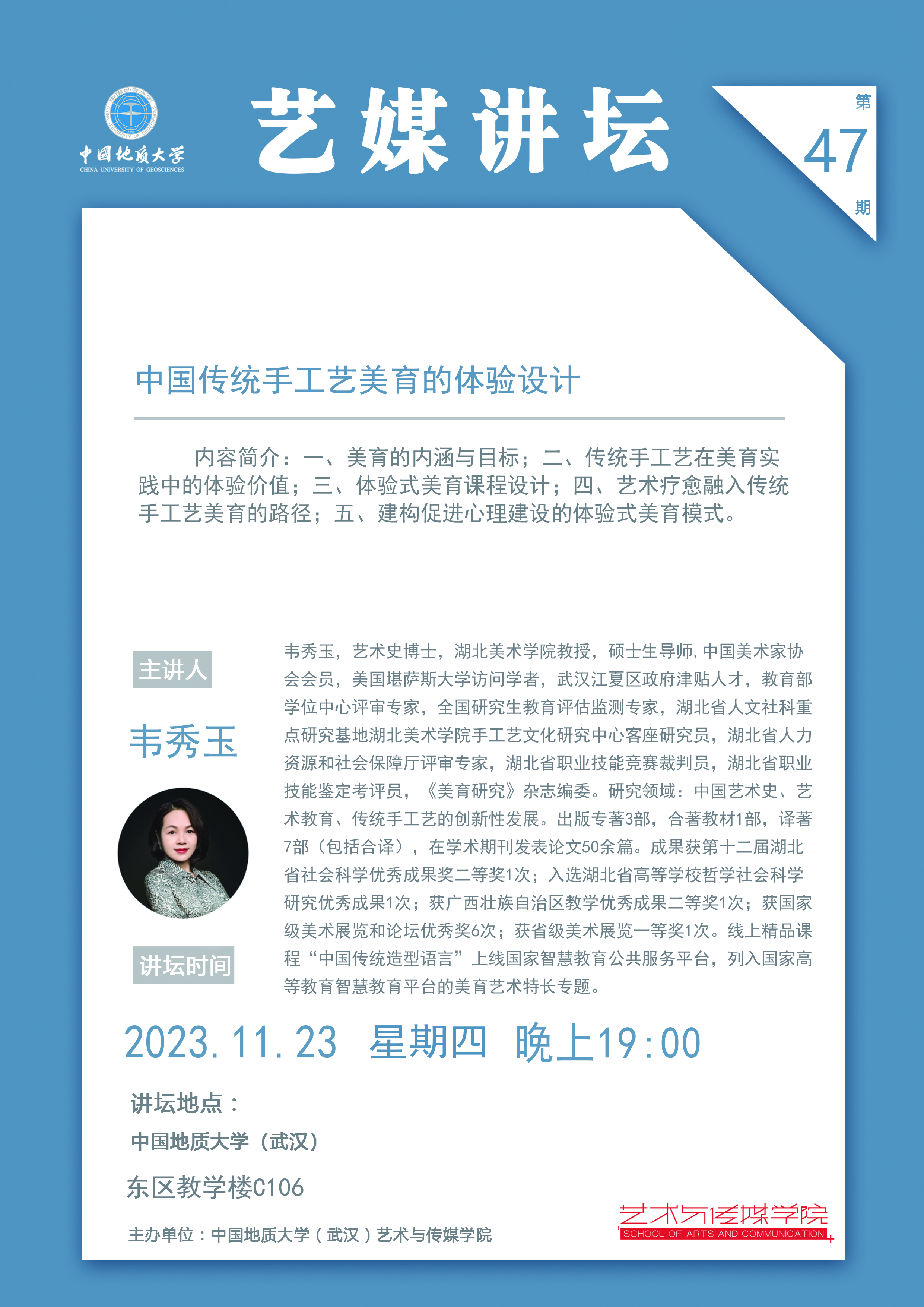【2023年11月23日】学术讲座:湖北美术果冻传媒 教授韦秀玉老师讲座