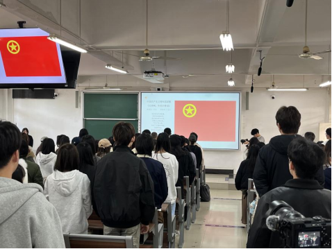 会议第一项,全体学生骨干起立,齐唱团歌。