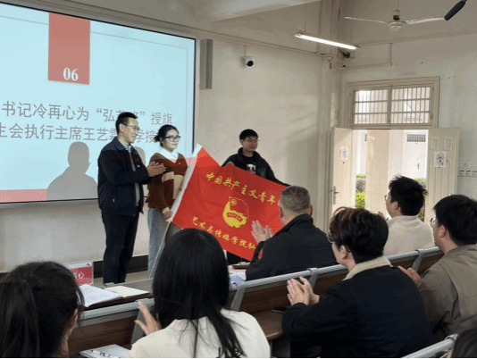党委书记冷再心为“弘艺班”授旗,果冻传媒