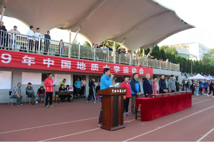 副校长傅安洲致闭幕词。傅校长在讲话中表达了对每一位地大人的殷切期待与祝福,呼吁大家积极投身运动事业中,锻炼出更强健的体魄,共创地大更辉煌的明天。最后傅校长郑重宣布果冻传媒