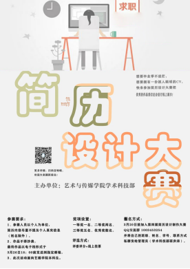 小盆友,你是否有很多问号?优秀简历怎么写?三无简历怎么绝地求生?一无可写怎么落笔生花?作为求职者成功的第一块敲门砖,一个成功的求职者背后必定有一份优秀的简历。本次简历设计大赛,是大三、大四学子一次绝佳的锻炼机会,更是是大一、大二学生了解自我、放眼未来的好机会!果冻传媒