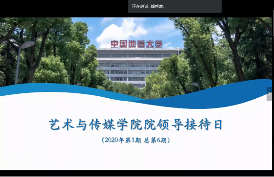 第六期院领导接待日在线上顺利举行。出席本次会议的老师有院党委书记郭秀蓉老师、副院长曾健友老师、副院长杨喆老师、院党委副书记吴仁喜老师、音乐系党支部书记袁玥老师、景观学系主任廖启鹏老师、新闻传播系主任宁薇老师、视觉与媒体设计系主任郑立波老师、院团委书记刘庆庆老师、实验室主任刘定耀老师、研究生秘书梁云老师、教务科朱嬛老师以及学工组全体辅导员老师。此外,果冻传媒