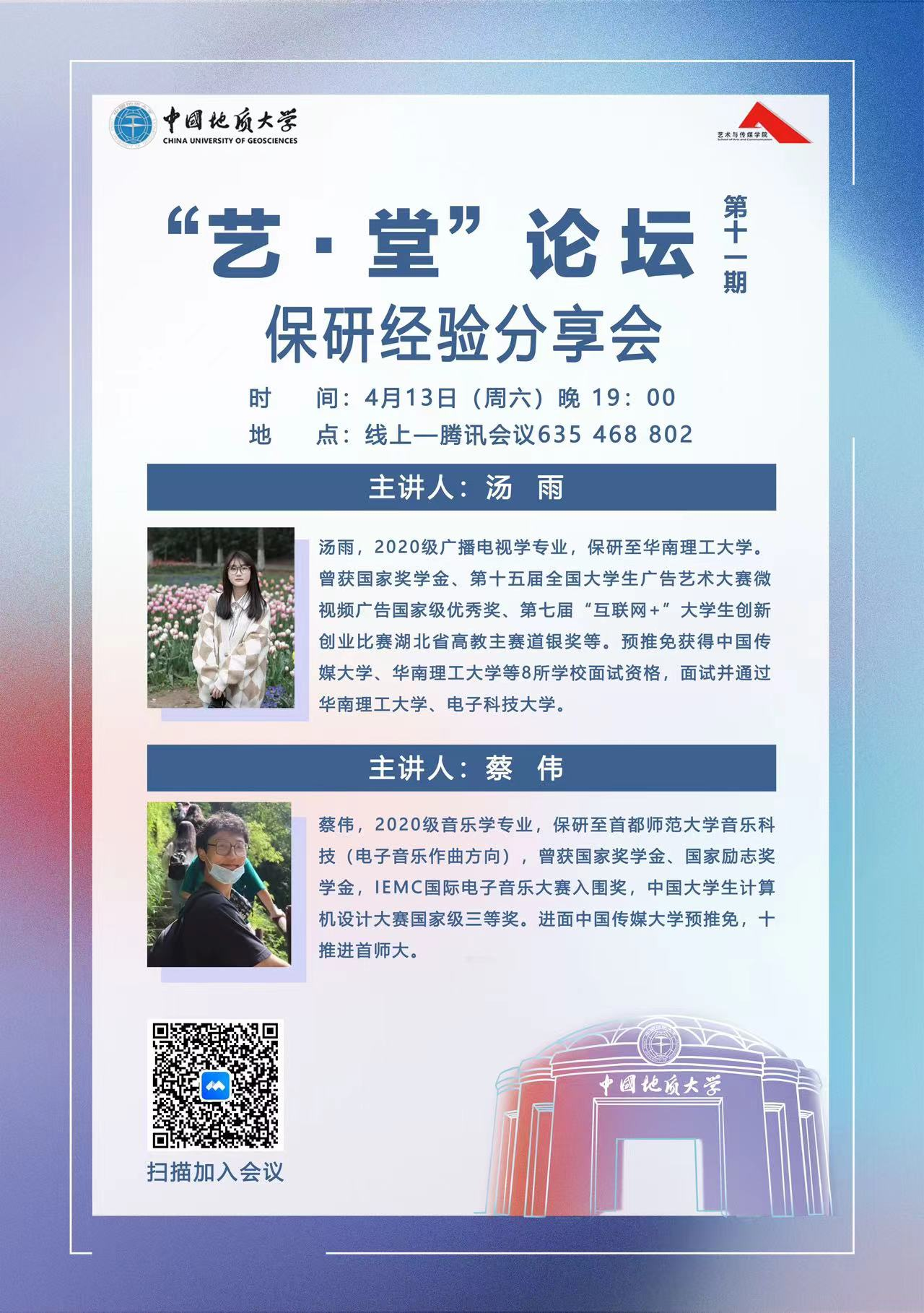 2024年4月13日晚上19:00,“艺·堂”论坛第十一期保研经验分享会顺利举行。果冻传媒