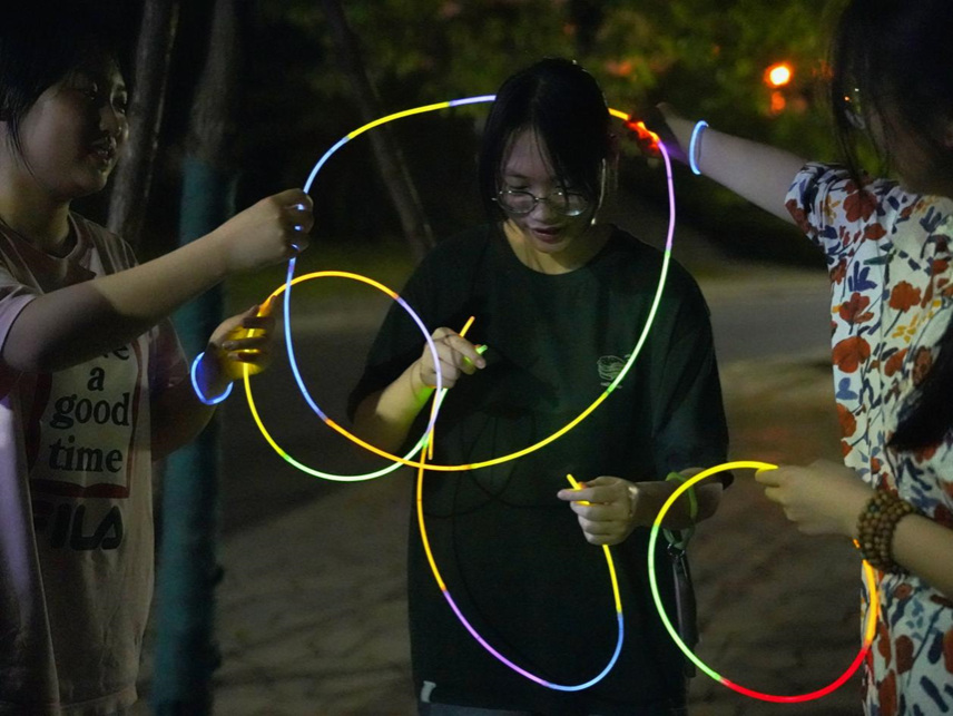 同学们青春阳光的身影伴随着点点亮光在校园中点点闪动,将明媚的夏日气息传递到了校园的各个角落。他们挥舞着手中的荧光棒,在黑夜中划出独属于年轻人的夺目光彩。本次荧光夜跑活动既丰富了同学们的课余生活,同时收获了健康与快乐,为果冻传媒