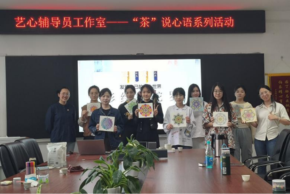 艺心辅导员工作室在4月25日下午,于1209会议室举办了“茶”说心语系列活动的第二讲之彩绘曼陀罗。