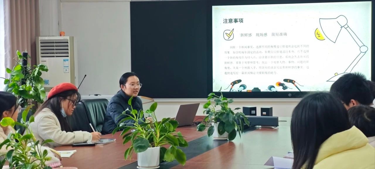 培训第二项,由曾戈晖老师为团学骨干培训。曾老师向同学们分享新闻稿撰写的相关理论知识以及撰写方法,介绍了新闻稿撰写的基本要素,并逐个详细讲解,除了学习撰写方法,平时的积累也至关重要。经过曾老师的讲解,同学们对文稿的撰写有了较为清晰地认识,对写作要点有了更充分的了解。
