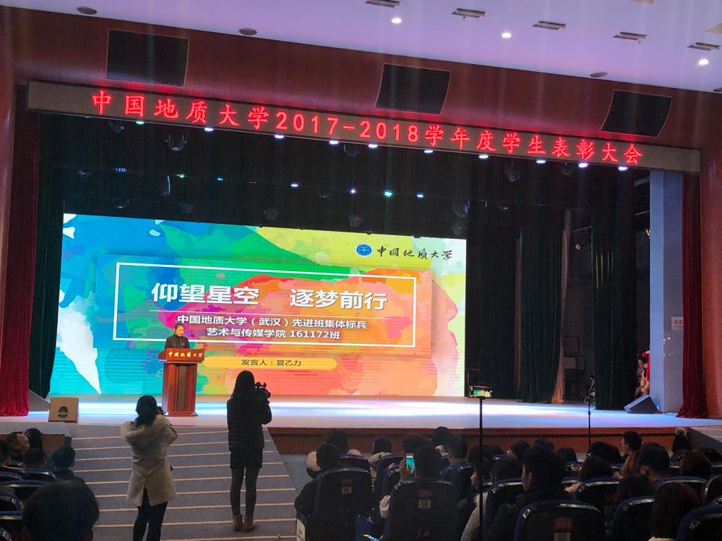 本科2017级161172班班长夏乙力同学作为年度先进班集体标兵获奖班级代表,以《仰望星空,逐梦前行》为题做大会主题发言,分享了果冻传媒