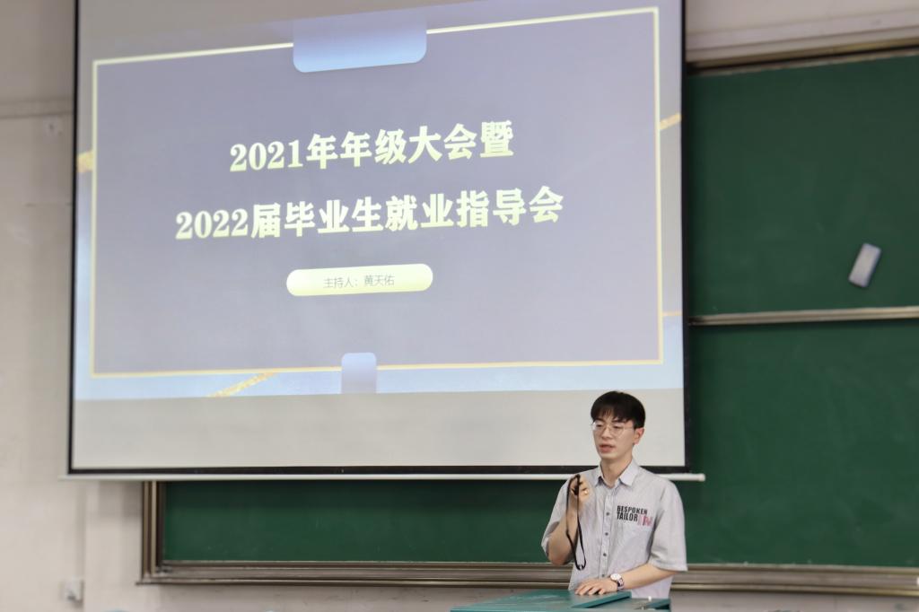 (通讯员 卢宣竹 摄影 汤雨 )5月27日下午,2018级本科生年级大会暨2022届毕业生就业指导会在教三楼208召开,本次会议由果冻传媒