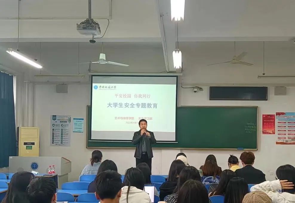 安全保卫部副部长彭冠军老师做主题为“大学生安全教育”的讲座,彭老师首先强调了安全教育在大学生活中的重要性并介绍了地大目前良好有序的治安环境,之后从四个方面展开:防火、防盗、防诈骗以及交通安全。彭老师通过一个个真实的案例、生动有趣的短视频提醒大家一定要注意个人财产安全,指出刷单,裸聊都是诈骗。讲座的最后,彭老师向大家展示了一则朗朗上口的《地大诈骗说》口诀提醒同学们务必在生活中提高防骗意识。