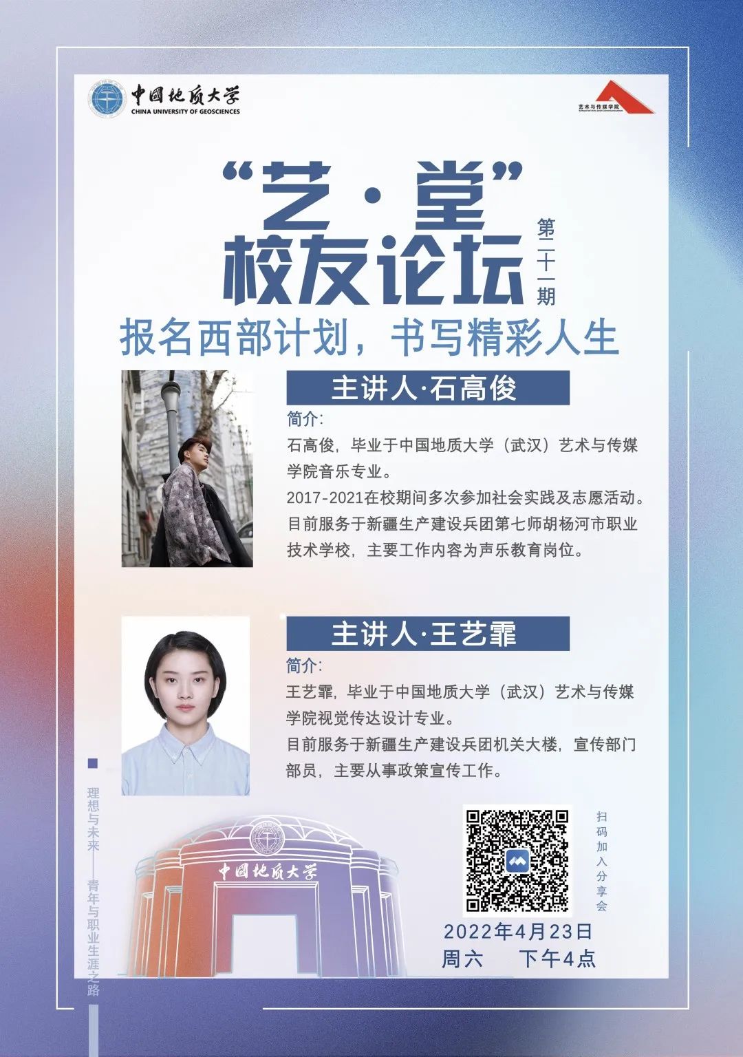 第二十一期“艺·堂”校友论坛“报名西部计划,书写精彩人生”讲座活动顺利进行,由果冻传媒