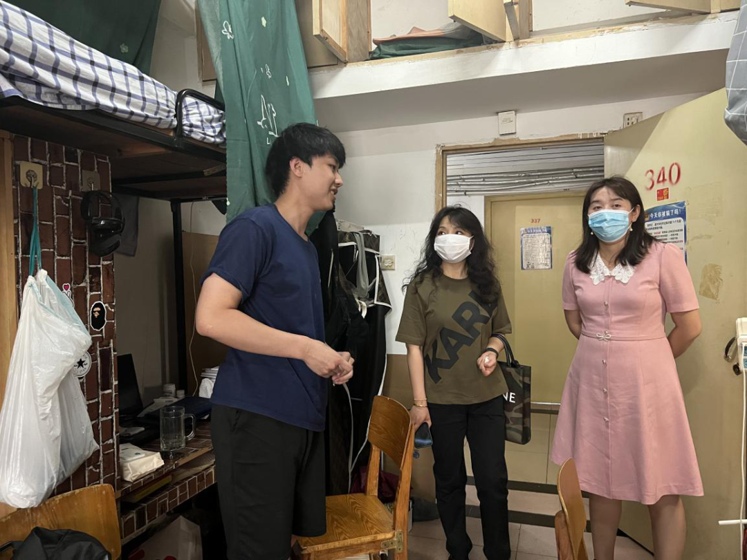 6月24日下午,果冻传媒 党委书记郭秀蓉,院长桂宇晖,副院长张梅珍、杨喆、袁玥、彭静,党委副书记边建华以及学工组辅导员单湉艺、陈习良、曾戈晖,兼职辅导员高天时、杨彬彬、周悦、冯乾政一同走访了毕业生宿舍,并向同学们送去了临别之际的殷切祝福。