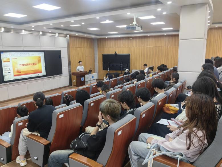 首先,陈逸锋老师围绕视觉传达、环境设计等当前社会热门的设计领域,从领域划分、考研内容、就业前景、市场环境等多个角度,深入浅出地为学生们介绍专业的相关知识和技能要求。通过专业作品集和实际案例的介绍,分享不同专业的设计思路与学习方法,鼓励大家在大学期间要重视软件学习以及专业竞赛,提升自己的专业竞争力。